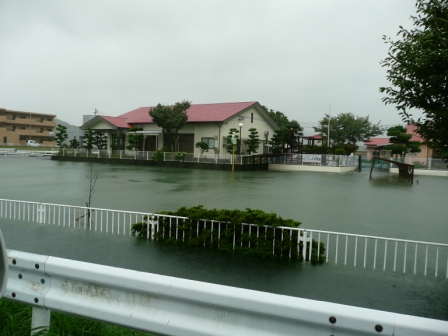 河川が溢れています。(延岡市、蛇谷川)